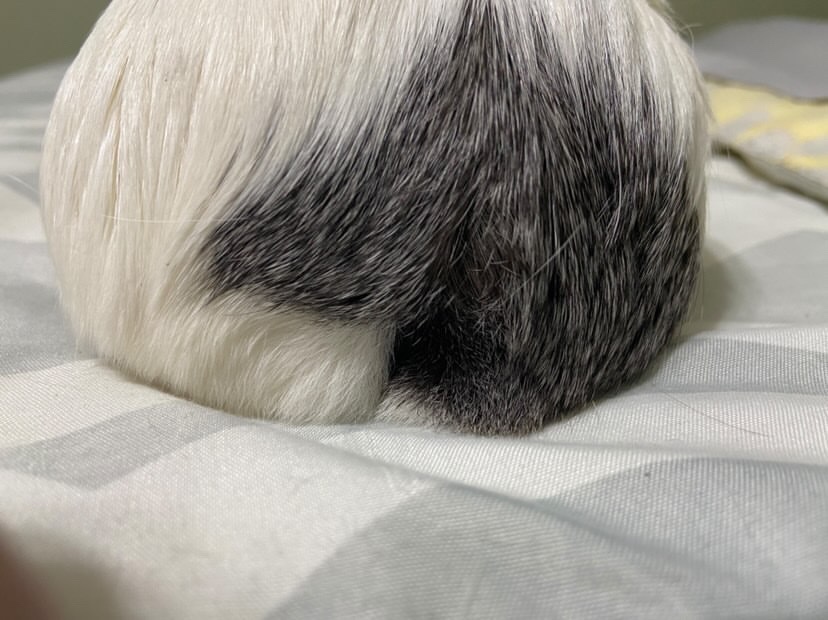 Guinea Pigs skin and hair should be clean and free from dandruff, flakiness and scabbing. There should also be no lumps or bumps