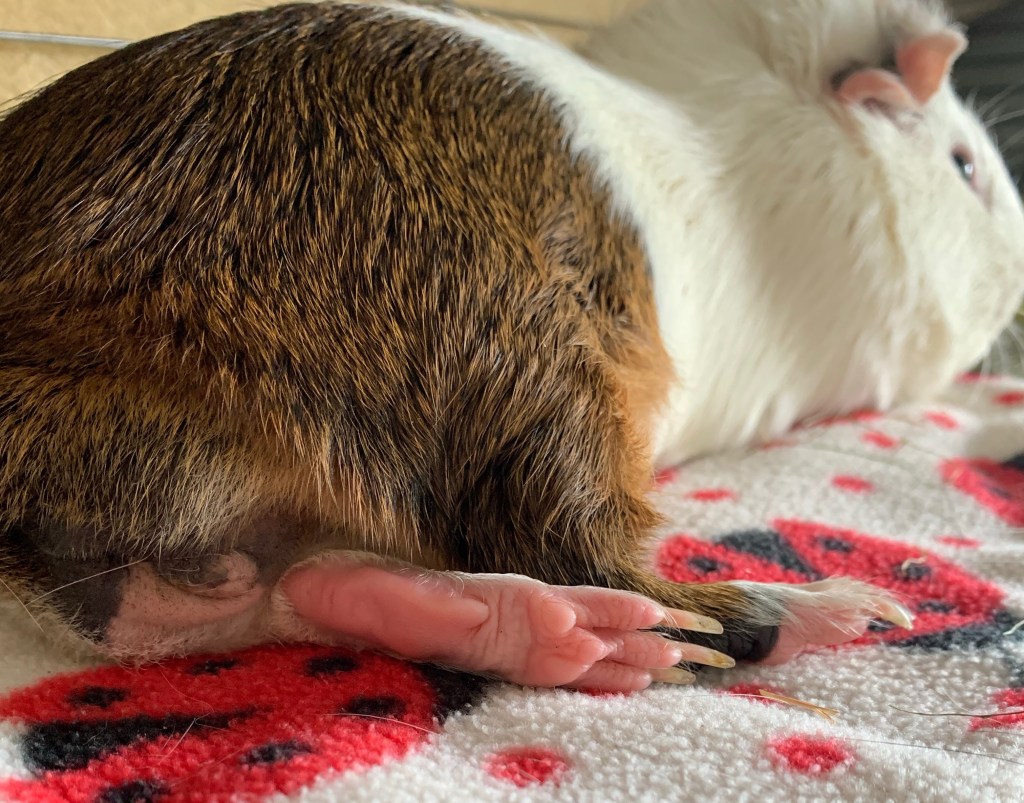 Guinea Pigs feet should be clean, smooth and free from scabbing.