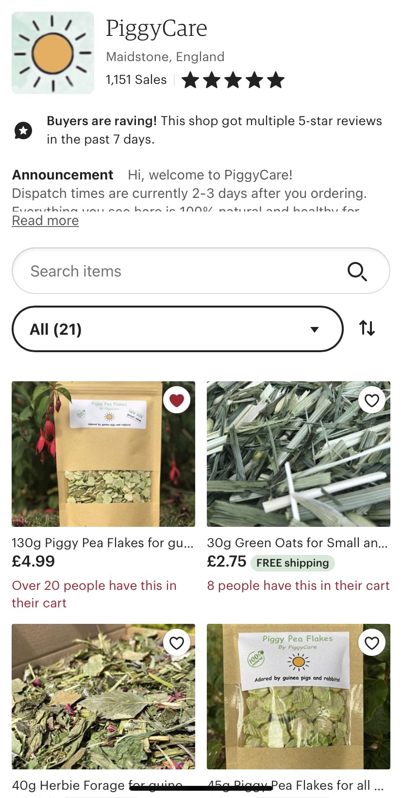 Our boys absolutely love all the treats from PiggyCare shop, but especially love the Pea Flakes, Green Oats, Parsley Stalks and all forages.
