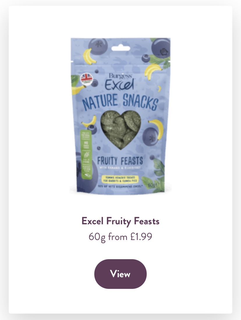 Burgess Pet Care are another favourite in our household! They sell treats and food with ingredients that keep your Guinea Pig happy and healthy.